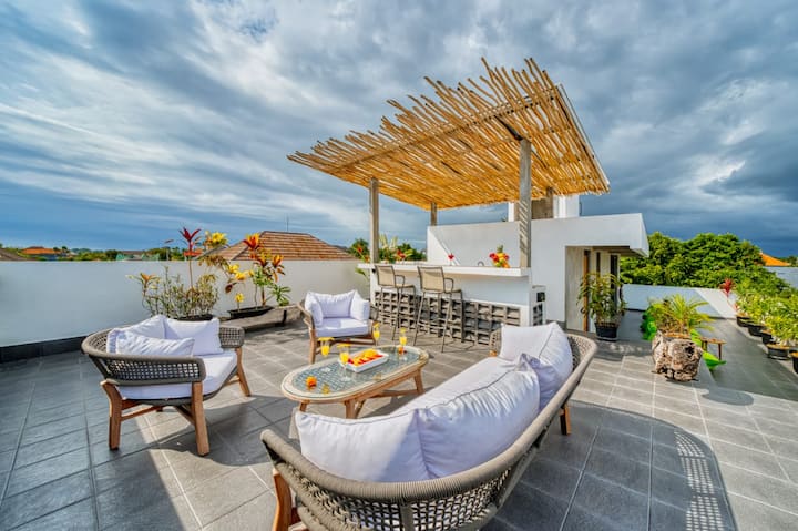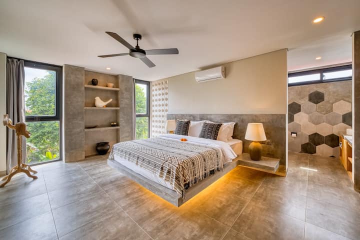 PROMOCIÓN Descubre la serenidad pura en nuestra exquisita villa de 3 dormitorios, perfectamente acunada en el abrazo del conocido Pererenan, Canggu. Sumérgete en la armonía perfecta del lujo moderno y el encanto sereno dentro de este refugio de concepto industrial semiabierto cuidadosamente diseñado construido sobre 3 pisos de altura. Diseñada pensando en los viajeros más exigentes, nuestra villa promete una escapada acogedora en un entorno verdaderamente pintoresco, con una habitación de niñera gratuita disponible para su uso~