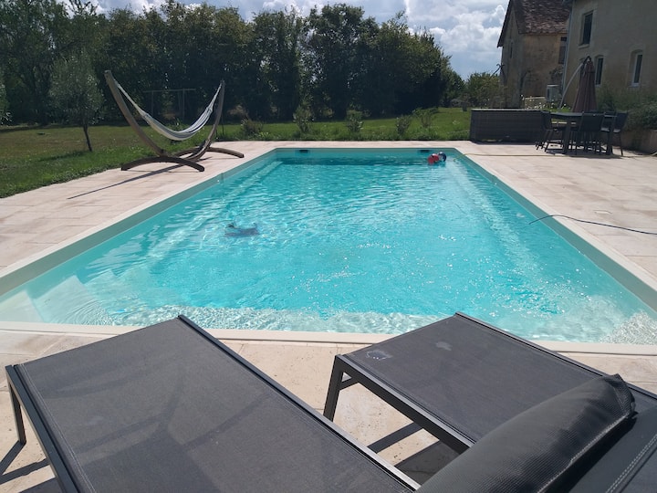 Con mi familia, vivimos en la propiedad de más de 3 hectáreas. Estaremos encantados, y con total discreción, de compartir con usted espacios comunes: Piscina, cancha de petanca, muchos juegos al aire libre, sala de juegos cubierta...