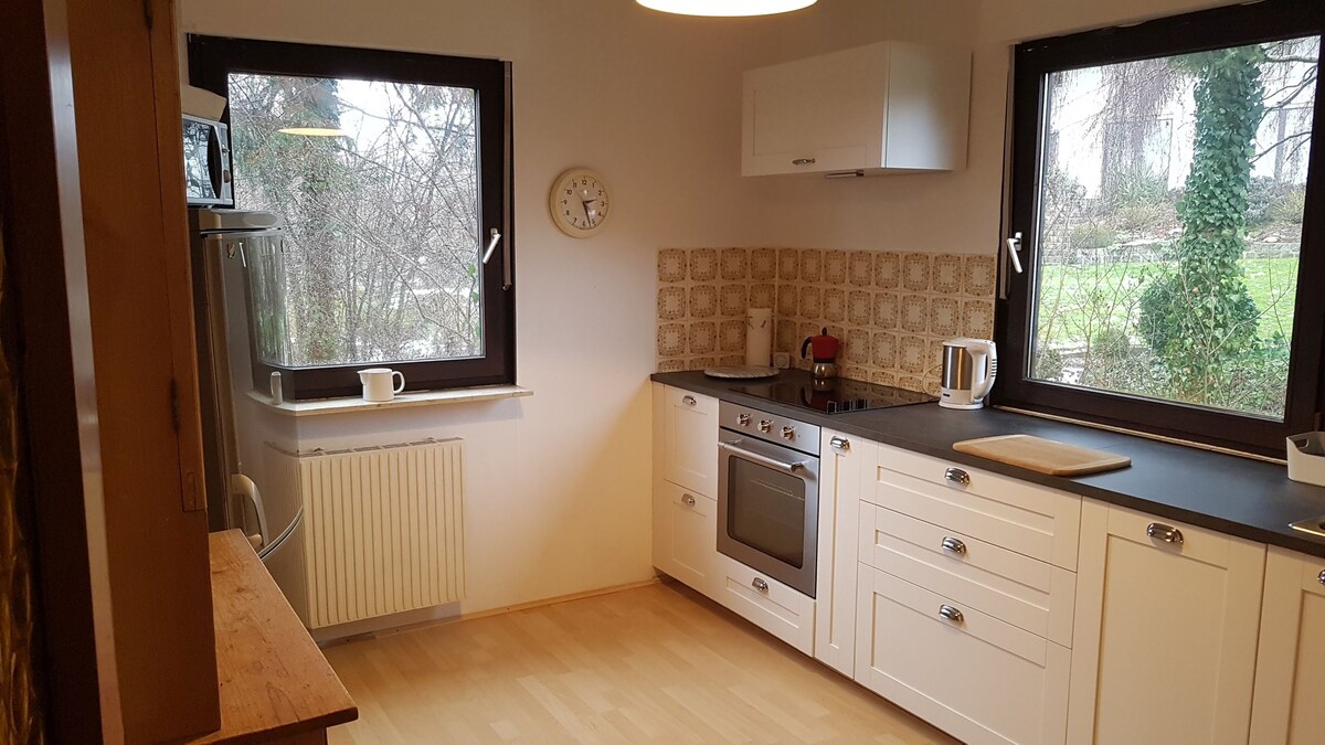 Casa independiente con balcón y jardín en una zona residencial tranquila. 2 dormitorios, baño/inodoro+ inodoro para invitados, cocina totalmente equipada, sala de estar. Internet de banda ancha WiFi/LAN . Cerca de Nuremberg / Messe . Otros alrededores son el hermoso Distrito de los Lagos de Franconia (por ejemplo, Rothsee a 5 minutos en coche/autobús, Brombachsee a unos 30 minutos en coche/tren). En general, muy bien conectado con la autopista y el transporte público (autobús, tren). Estación de tren a 5 minutos caminando. Nuremberg a 30 minutos en coche o tren. También Ingolstadt. Múnich 1 hora.