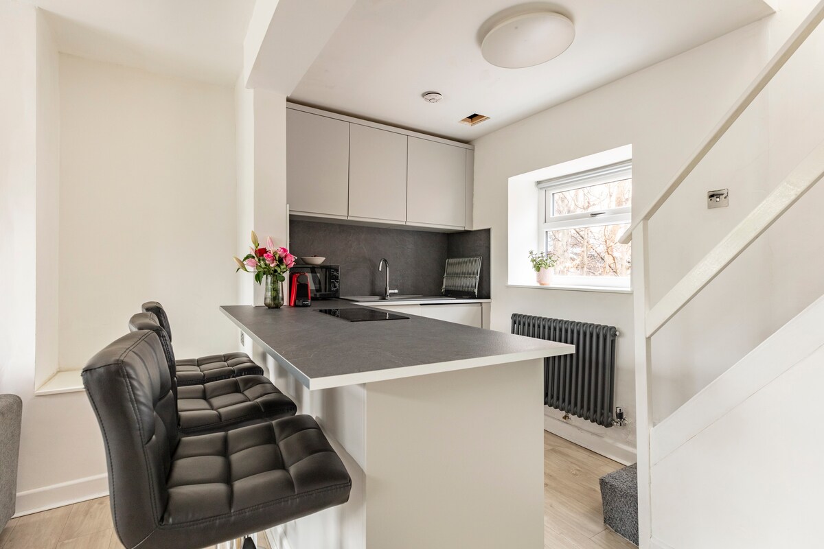 Un apartamento moderno y lujosamente amueblado en la planta baja en el frondoso barrio de Roundhay, en Leeds, con capacidad para 4 personas. Incluye una gran sala de estar/cocina de planta abierta (que incluye un cine en casa) que conduce a una suite de invitados independiente que consta de un dormitorio y un baño de tamaño considerable. A 10 minutos a pie del parque Roundhay, a 5 minutos de los servicios de Street Lane y de las rutas regulares de autobús al centro de la ciudad de Leeds. El acceso dedicado es a través de una puerta plegable a un gran patio/jardín que los huéspedes pueden utilizar.