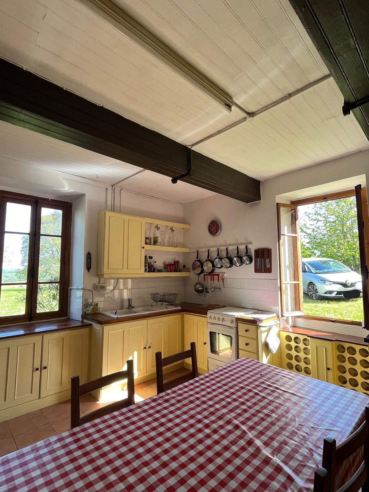 Casa aislada en aldea centro Gers tranquila asegurada magnífica vista del valle de la Baïse A 10 minutos de todos los servicios Cocina Sala de estar Arriba 2 dormitorios (1 cama en 140 y 1 cama en 90 en cada uno) WC separado Terraza Muebles de jardín Plancha 10 min Vic Fezensac 10 min Castera Verduzan 15 min Condom 25 min de Auch 1h30 de Toulouse 2h Burdeos 1 hora de Agen Ropa de cama incluida Numerosas visitas y actividades cercanas Lagos y piscinas