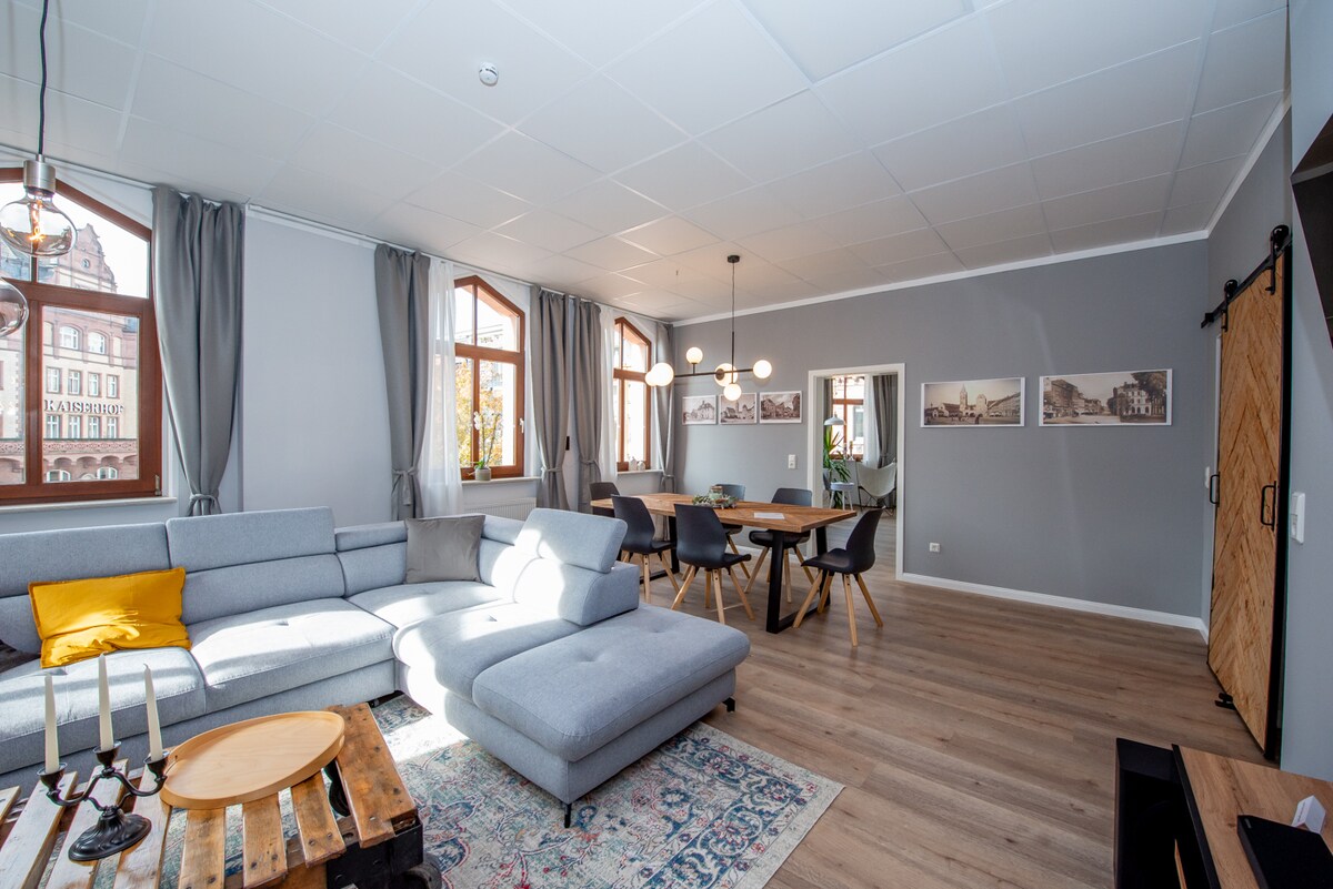 Apartamento con sauna de infrarrojos propia, perfecto para relajarse. Decorado con mucho amor, el apartamento ofrece una comodidad especial. En el centro de la ciudad, ideal para un viaje a la ciudad o para hacer senderismo. Para acogedoras noches de televisión, un gran sofá y un enorme televisor de pantalla plana con Netflix invitan a relajarse. La cocina está equipada con todo lo necesario para cocinar. Desde la sala de estar y el dormitorio se puede ver el castillo de Wartburg, la histórica puerta de San Nicolás y el patio imperial.