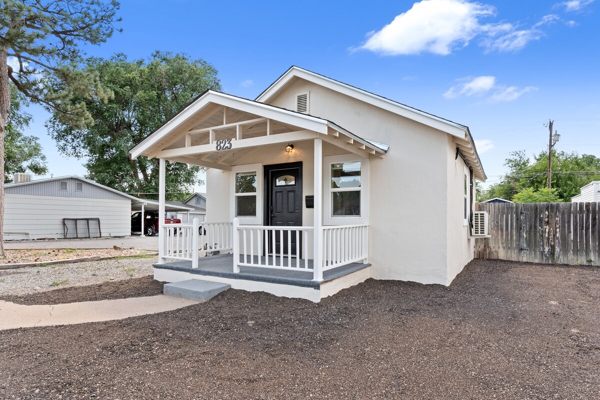 Quiet neighborhood located in Pueblo West. Sits real close to our house. This is a very small, but newly renovated tiny house! 12' x 16' one room, queen bed, nice size shower and toilet with barn door for privacy in bathroom. Sit-up bar with two stools, smart TV with electric fireplace in the corner gives it a touch of romance! Loveseat with ottoman. Small loft that kids could sleep in for short stays. Small coffee pot, under counter fridge, and nice size mirror over farm sink.