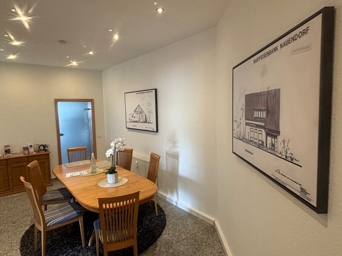¡Te damos la bienvenida al hermoso Saalestadt! En nuestro apartamento, ubicado en el segundo piso, puedes esperar: + Acogedoras camas de somier + sofá cama con colchón completo + Toallas y sábanas incluidas + Comedor con capacidad para 6 personas + Espacio de trabajo + Balcón + Cocina totalmente equipada con horno multifunción, lavavajillas, cafetera y té + Cuarto de baño con bañera + Televisión inteligente con Netflix, Disney+ y RTL+ + distancias cortas al público Transporte, panadería, supermercado, zoológico, Galgenberg