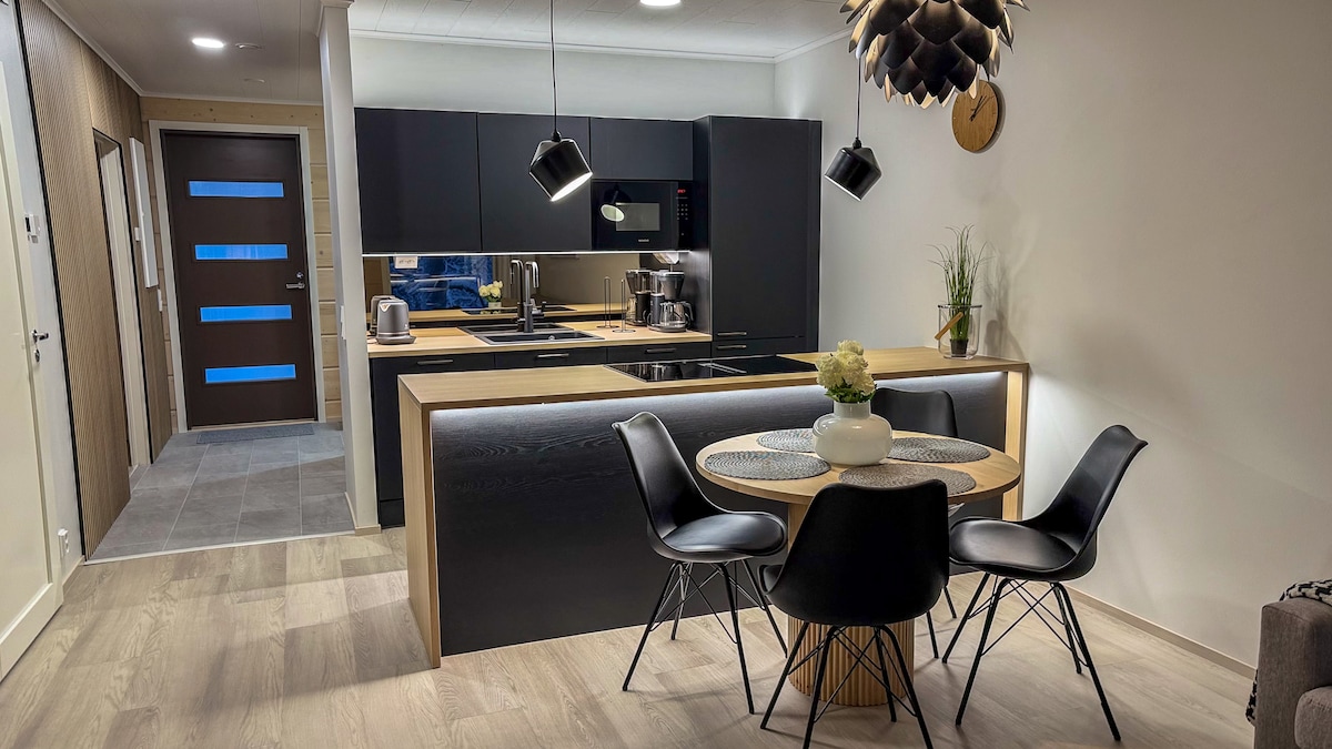 Amplio apartamento moderno en el 4º piso con vistas a la estación de esquí en el centro del pueblo. Contempla la aurora boreal desde tu ventana. Dos baños con 3 duchas y una sauna. Cocina totalmente equipada. Tres dormitorios con 2 camas individuales cada uno y un sofá cama. Plaza de aparcamiento gratuita con calefacción. Almacenamiento de esquís y zona de encerado. Nos encanta ayudarte con tus excursiones o preguntas. Autobús del aeropuerto y parada de autobús de esquí delante del apartamento.