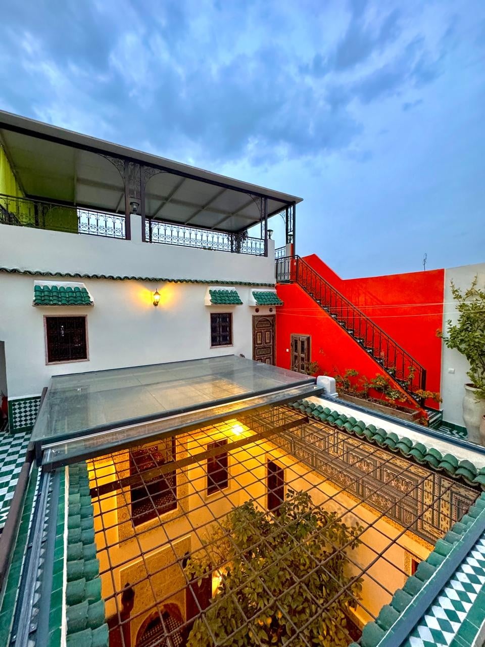 Es un lugar ideal para la luna de miel, reuniones familiares, descubrir la medina de Fez, entre libros y música, bajo y sobre el arte. Te encantará estar aquí. El lujo del lugar, la sencillez de las cosas, sentirás la armonía entre el sonido del agua y el canto de los pájaros. Probarás la famosa cocina marroquí y la cultura y tradiciones medievales. Cerca del aparcamiento Ainazliten, en la popular zona de Talaa Kebira, estarás en el corazón de la medina. De nada. Adil te espera.
