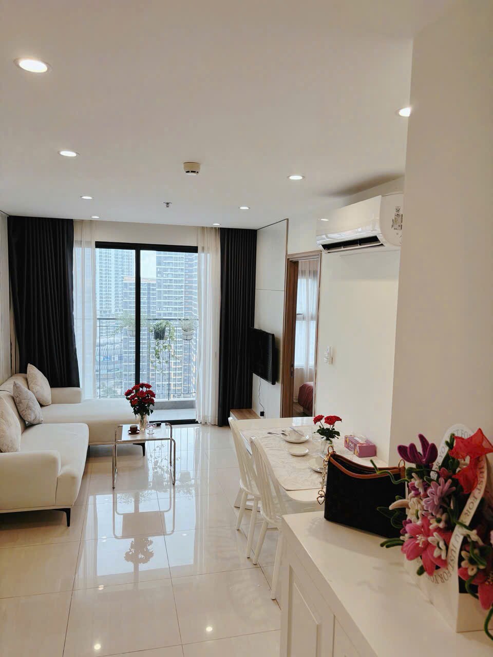 Los lujosos y sofisticados apartamentos de diseño pueden ofrecer a los clientes una experiencia de vida perfecta con servicios públicos y características de alta gama. Incluye: Premium: Sistema de aire acondicionado, sistema de seguridad 24/7 y cerradura magnética. Impresionantes vistas del río Amplio espacio: el departamento tiene una amplia sala de estar con 2 dormitorios, 2 baños, 1 sala de estar, cocina con utensilios de cocina completos. Estos crean una gran experiencia de vida con libertad, privacidad y servicios de primera calidad para nuestros huéspedes.