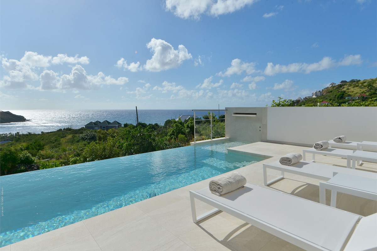 Oceana es una espaciosa villa de 2 dormitorios con piscina en las alturas de Vitet. Ofrece magníficas vistas a Toiny Bay y al océano. La villa es un refugio de paz a solo 10 minutos de St Jean y a 15-20 minutos de Gustavia.