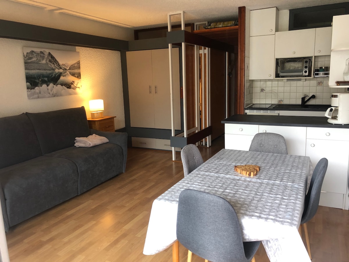 Alojamiento de 37 m2 en la planta baja del chalet,situado a 1 km de las pistas de esquí con servicio de autobús gratuito para las pistas en invierno. El apartamento tiene una cocina con 2 fogones eléctricos, un lavavajillas y equipos de cocina que incluyen vajillas, microondas, refrigerador, televisión, secador de pelo, mesa y plancha, aspiradora. Puesta a disposición de la barbacoa del jardín. OPCIÓN: sábanas y toallas para ver con el propietario.