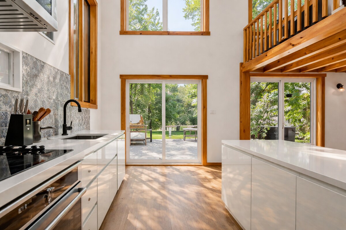 Espacio abierto monumental, en pleno corazón de la naturaleza. Acceso a senderos directamente detrás de la casa. Estufa de leña, baño grande y moderno, un dormitorio + sofá cama. Otro sofá cama en la sala de estar. Chalet ideal para una pareja con hijos o para dos parejas. ¡Bienvenidos, amantes de las aves silvestres, los pavos y los ciervos! Wifi y cargador para vehículos eléctricos incluidos. ¡Se admiten perros! CITQ : #308038