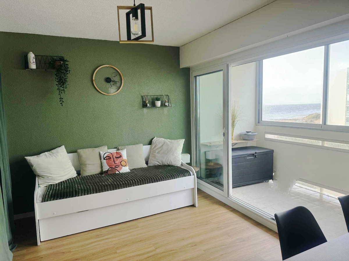 Magnífico estudio frente al mar orientado al suroeste,con unas vistas impresionantes del mar y del paseo marítimo de Saint Jean de Monts. El estudio ha sido totalmente renovado por nosotros. Su decoración de moda hará que su estancia sea tranquila y acogedora. La residencia es segura. Una plaza de aparcamiento privada y segura le espera.