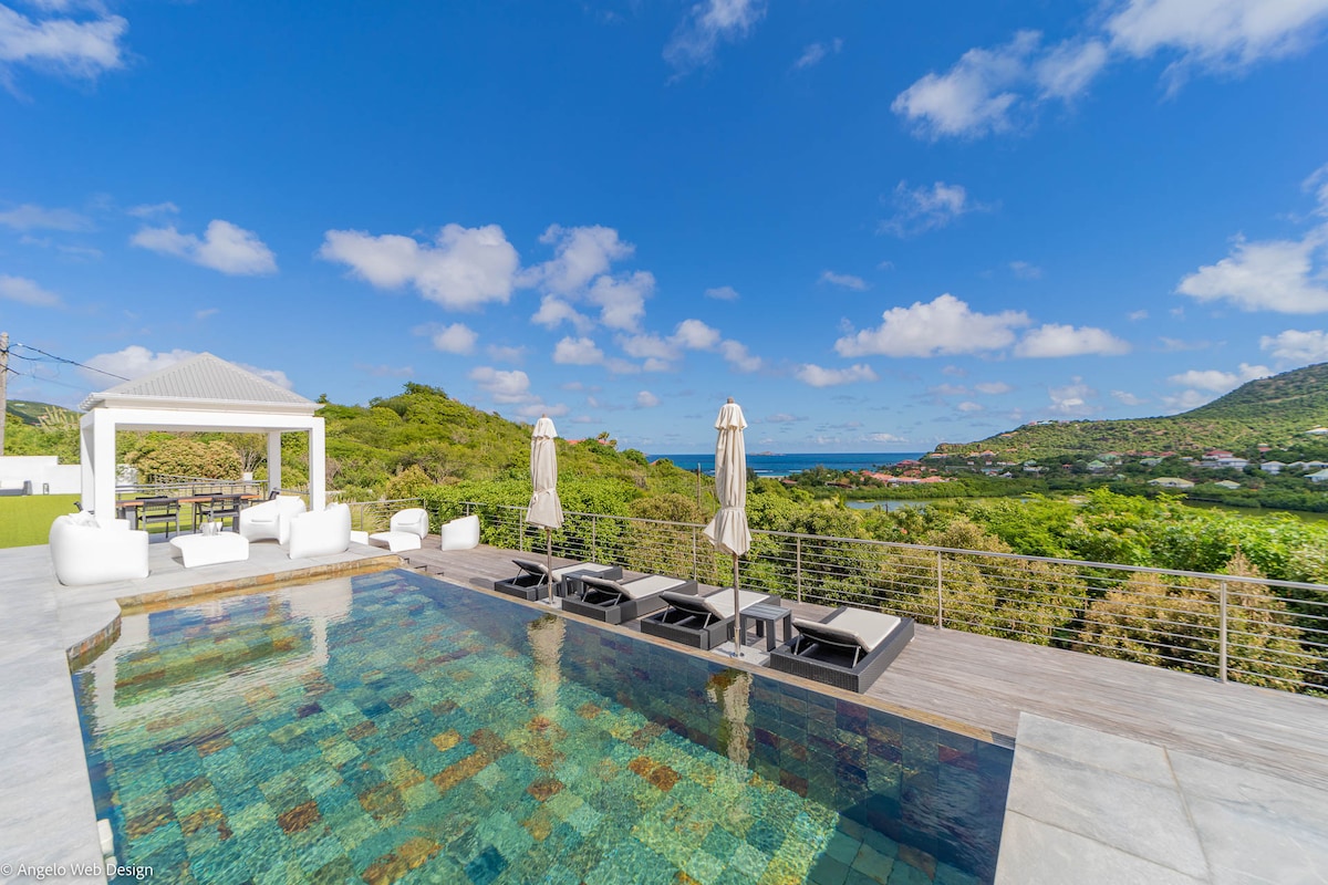 Villa reciente con vistas al mar situada en las inmediaciones de Gustavia y St Jean. Consta de un dormitorio principal con su baño, un segundo dormitorio y un baño que completan el conjunto. La cocina está abierta al comedor. El salón está separado y es espacioso. Los espacios están conectados por una gran terraza con una zona de estar, una mesa de comedor al aire libre y una piscina climatizada. Un parking privado permite aparcar con total seguridad.