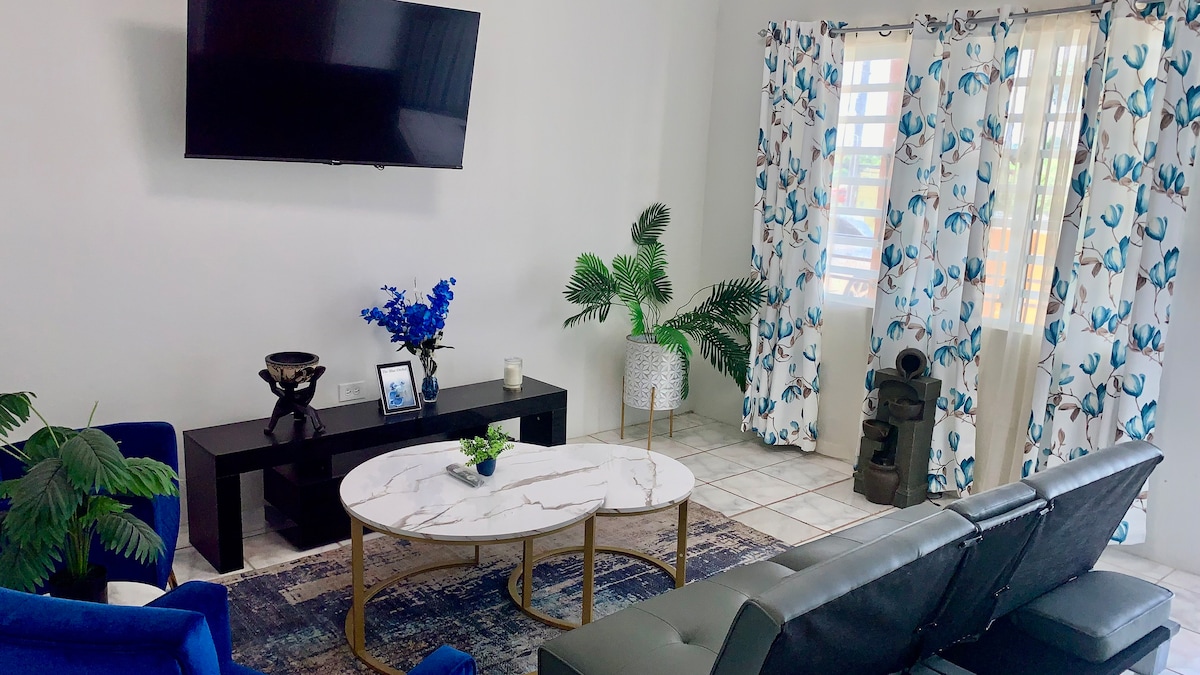 The Green Zennia, your luxury Bird Rock retreat. This one-bedroom suite offers contemporary decor with island warmth, comfort and convenience creating the perfect place to unwind. Conveniently located to fast food, food court, gym, and supermarkets within walking distance. Fully equipped modern kitchens. Minutes away from Casino, Golf Course and downtown Basseterre. Public transportation only a few steps away. Stay connected and relax in this high-speed, smart TV, keyless entry island treasure.
