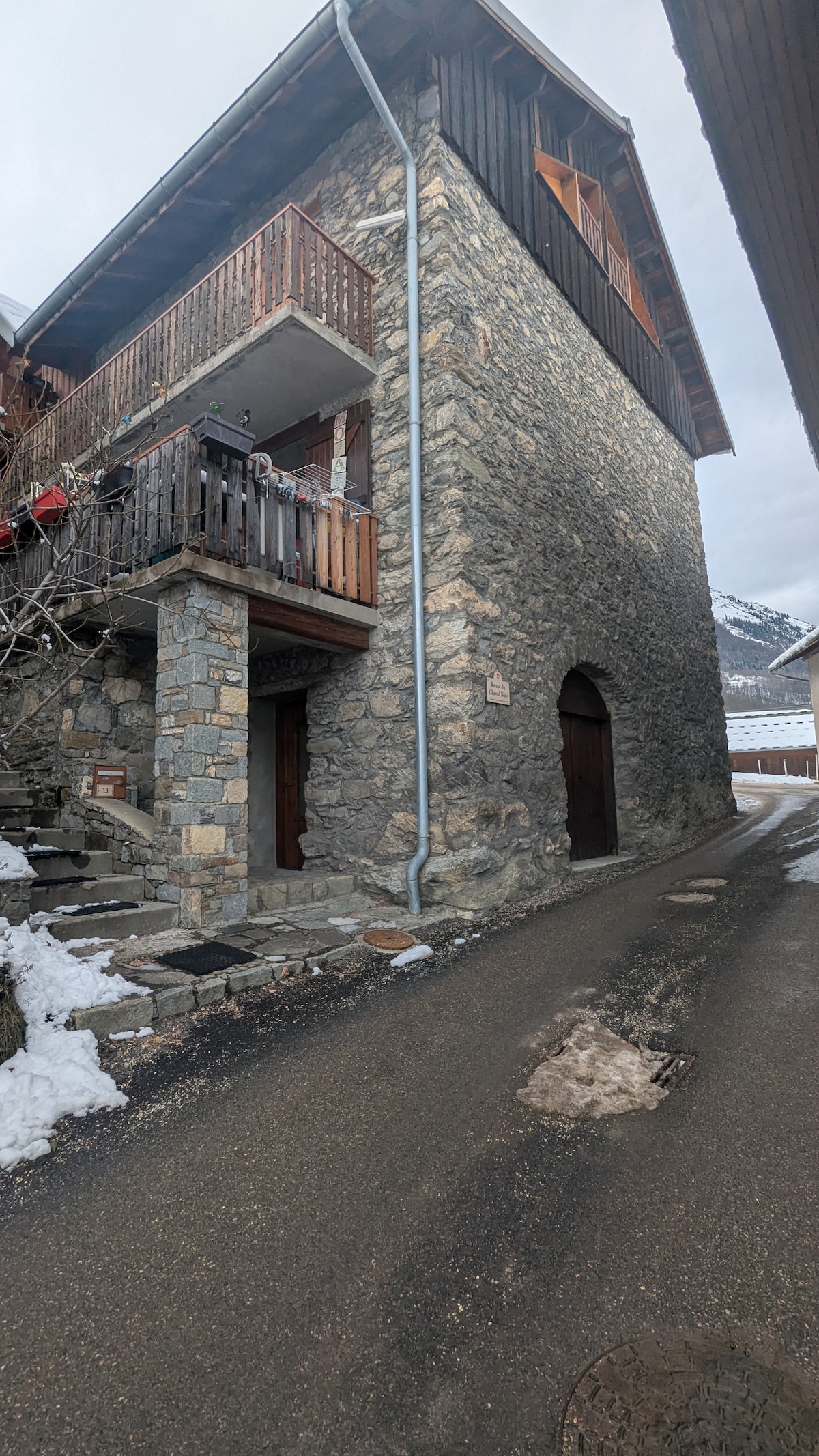 Alojamiento tranquilo situado en el último piso de una casa de pueblo típica (acceso a las pistas de los 3 valles a 5 minutos en coche). El alojamiento incluye un primer nivel que consta de una cocina-sala de estar; un dormitorio con 2 camas individuales superpuestas, un inodoro independiente y un baño. Arriba encontrará un gran salón con vistas panorámicas a las montañas, así como una cama de 2 plazas separada por una celosía. Una bodega en la planta baja es accesible para guardar sus esquís.