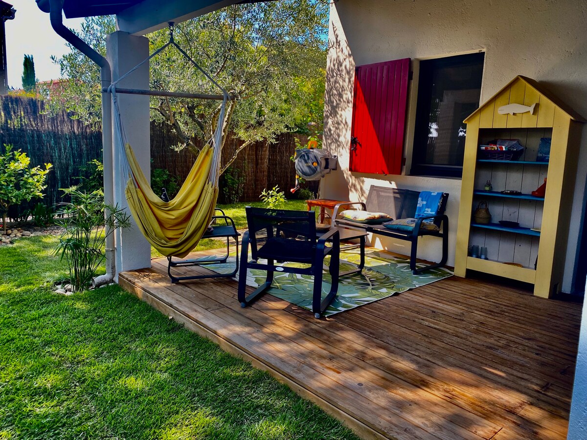 Alquiler Mazet 3 estrellas con aire acondicionado 35M² 4 personas con terraza/jardín en la planta baja, 1 plaza de aparcamiento privado con código digital y mando a distancia, a 7 minutos del centro de la ciudad y de las tiendas (no se necesita coche), en una residencia segura. gran piscina comunitaria con piscina infantil y casa de la piscina abierta desde mediados de abril hasta mediados de octubre LES JARDINS DE FONTANILLE. el inquilino tiene la opción de hacer la limpieza por sí mismo o dejar la suma de 50€ para la persona que se encargará de ello.