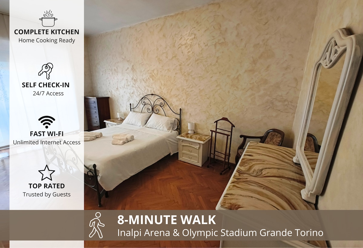 Elegante appartamento situato in posizione strategica a pochi minuti a piedi dal Centro Storico di Torino e dalla Stazione Porta Susa. Arredato in maniera funzionale e dotato di ogni comfort è la soluzione perfetta per ogni tipo di viaggiatore proveniente da tutto il Mondo. Le fermate di Bus e Tram in Piazza Statuto distanti pochi minuti a piedi dall'appartamento permettono di raggiungere le principali attrazioni turistiche della Città e lo Juventus Stadium. Parcheggio Privato GRATUITO in loco.