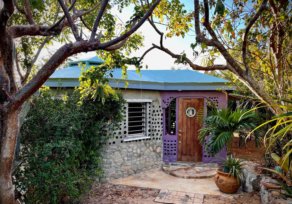 Ubicada en la selva tropical, al final de una larga escalera bordeada de palmeras y árboles de orquídeas, se encuentra una casa de campo de 650 pies cuadrados recientemente remodelada, envuelta por la flora y fauna vírgenes de St John. Las principales salas de estar y los dormitorios están decorados con buen gusto y totalmente climatizados. La cocina está bien equipada. El gran porche envolvente con mosquitera ofrece una sala de estar interior/exterior con cómodos asientos y comedor al aire libre. Bienvenido a la cabaña Verde, ¡tu tranquila escapada a la isla en la montaña de Burdeos!