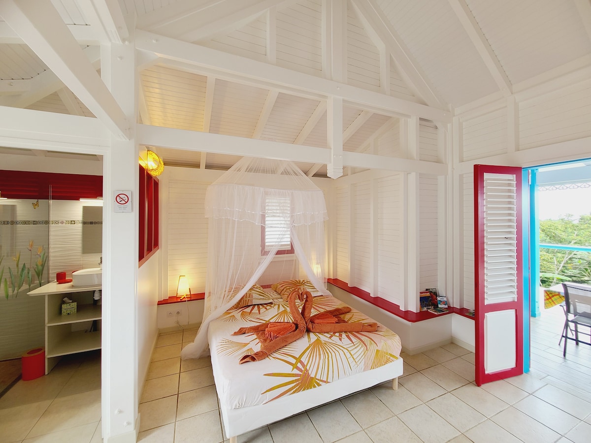 Rose indigo se encuentra a dos pasos del centro de Sainte-Rose, cerca del Parque Nacional de Guadalupe, un tesoro tropical. El estudio para 2 personas consta de una entrada, sala de estar, cocina americana, ducha a ras de suelo, terraza al estilo de los carbets amerindios, con vistas al jardín rico en plantas tropicales, como aloe, hibisco, atoumo, calabaza y... índigo. Encanto único: la casa alberga una exposición permanente de obras pintadas y artesanía local.