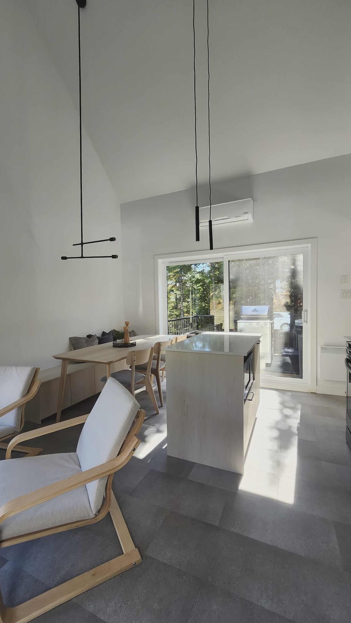 El rifugio es el lugar ideal para refugiarse. Un remanso de paz en plena naturaleza, rodeado de montañas hasta donde alcanza la vista. El Rifugio te ofrece la libertad de establecer un vínculo auténtico con la naturaleza y disfrutar de tiempo de calidad solo o con otros. Tan pronto como entres por la puerta, serás recibido en un ambiente cálido y acogedor. Las grandes ventanas ofrecen una magnífica vista de las montañas circundantes y a lo lejos podemos ver la punta del lago Mégantic.