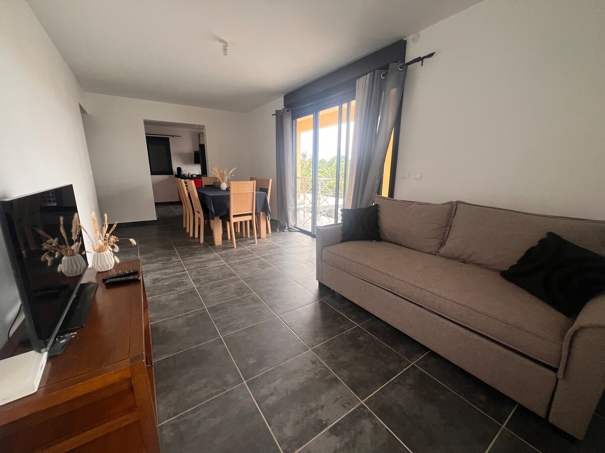 Escápate al corazón de la naturaleza en nuestro apartamento situado en el primer piso de una villa reciente. Este refugio tranquilo, ideal para 6 adultos, también es perfecto para familias. Nuestro jardín perfumado con vainilla y especias locales, una verdadera invitación a la relajación. Tanto los pequeños como los mayores estarán encantados con nuestra eco-granja, donde los conejos, cobayas y tortugas viven en armonía. A dos pasos de los senderos que conducen a Salazie, es el lugar ideal para los amantes de la naturaleza y el senderismo.