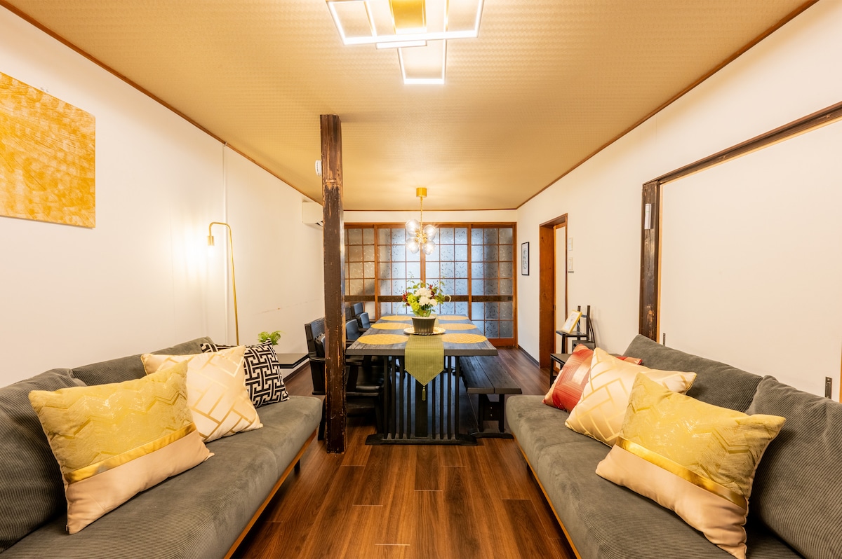 Convenientemente situado a 10 minutos a pie de Kyoto Gyoen, "Suiten", que nació en 2024, es un espacio de lujo que combina el encanto de una casa de Kioto con la sofisticación moderna. Esta posada, diseñada por el Departamento de Arquitectura de la Universidad de Kioto, es una obra que combina maravillosamente la tradición de una casa de Kioto con la elegancia moderna. La vista a través de los grandes ventanales ofrece una hermosa armonía entre la naturaleza y la arquitectura. Este espacio único, donde puedes sentir una sensación de unidad con el antiguo paisaje urbano, ofrece una experiencia exquisita que combina la tradición de una casa de Kioto con la elegancia moderna. Un momento de 🛋 lujo Mañana: Comienza el día de forma relajada y elegante con un café Nespresso. Noche: Disfruta de un momento especial con deliciosa comida hecha en una cocina profesional y películas en un cine en casa. 🛏 Equipo. 2 camas individuales, 1 sofá cama, 1 futón, cuna disponible (4 adultos) Los muebles de alta calidad y las comodidades sofisticadas lo hacen perfecto para estancias largas. ✨Ubicación Kyoto Gyoen está a 10 minutos a pie Shijo Karasuma está a 15 minutos a pie Buen acceso a Gion, el mercado de Nishiki, Arashiyama y Fushimi Inari Taisha Después de hacer turismo, disfrute de una estancia especial en «Saeten», donde podrá deleitarse con un entorno tranquilo y un espacio de lujo, y sentir el encanto de Kioto con los cinco sentidos.