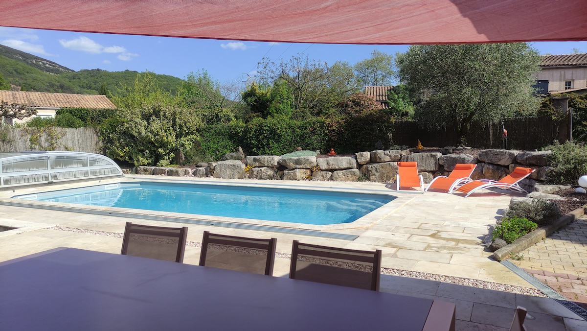 Bienvenue dans cet oasis paradisiaque , hâvre de paix et de sérénité ,grand bassin bio 300m3 ,nettoyé,baignade du 08/06 au 24 /09 cascade ponton,plantes exotiques,Studio neuf confortable clim,wifi,reception tv,literie 160,cuisine équipée,douche style italienne, terrain 300M2 ,bain soleil, barbecue ,plancha,éclairage nuit, sans vis à vis.(savon non fourni)ménage,draps et serviettes compris.chien accepté 15euros à payer sur le site ,nombreux chemins de rando à partir de la location.