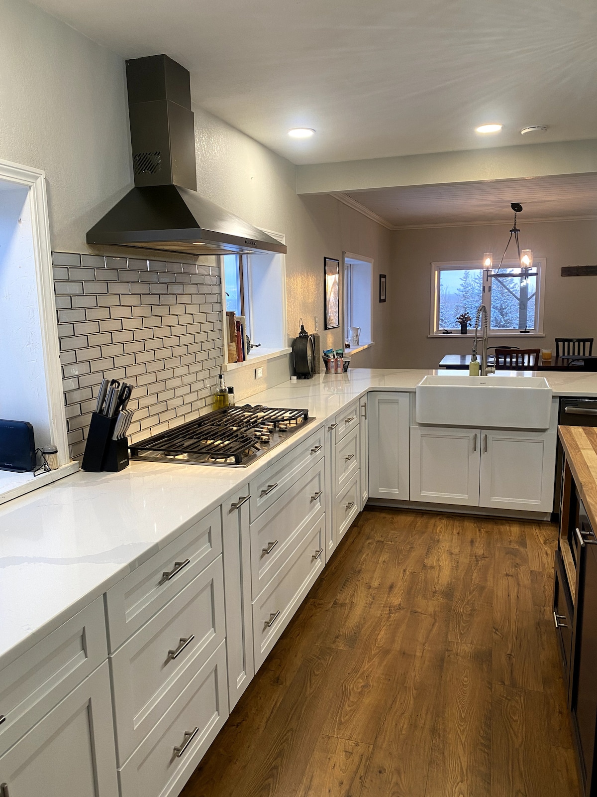 Dinjik Zheh (Moose House) es una cabaña rústica moderna. Una escapada perfecta de la ciudad. Sumérgete en la bañera con patas de principios de 1900 o sumérgete en el jacuzzi y disfruta de las vistas. Con una hermosa cocina abierta y una cocina de gas, disfrutarás haciendo una comida casera. Enciende la estufa de leña, atenúa las luces si lo deseas y deja que tus preocupaciones se vayan. Si prefiere la ruta moderna, aún puede ver sus programas favoritos en el televisor 4K de 55” o conectar su música a través de bluetooth a la barra de sonido Bose y disfrutar.