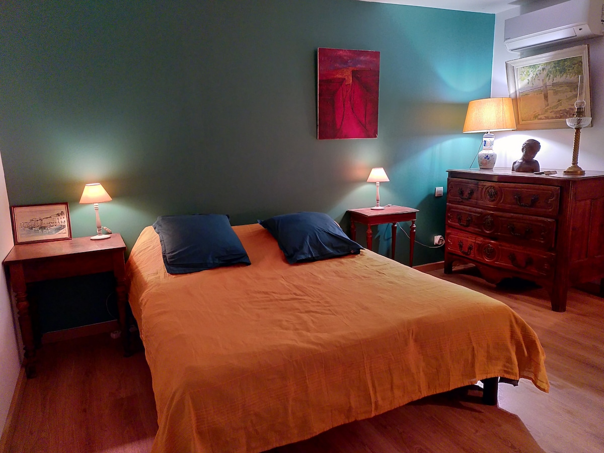 Your cozy getaway awaits in Saint Andre de Cruzieres at this luxury apartment. This gorgeous space features 1 bedroom with a luxurious king size bed, a modern bathroom with Italian shower, fully equipped kitchen and essential amenities like AC and heating, bathrobes, a washing machine, and a dining area. A hectare of garden is yours to wander, scattered with umbrella pines, cypress and olive trees. You can float in the pool (12x6) or hone in on the honesty bar in the pool house.