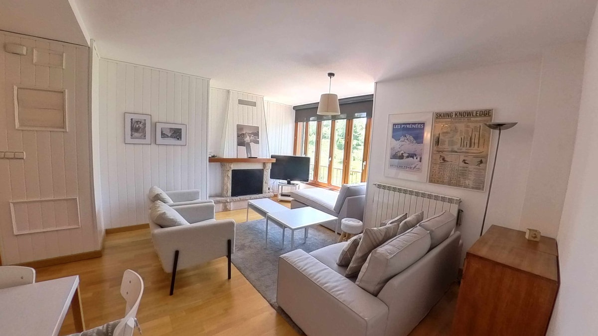 Apartamento con vistas espectaculares en el Pirineo Aragonés. A 8 min en coche de las pistas de Formigal y a 10 de Panticosa. Con ascensor, plaza de garaje de acceso directo, cocina equipada (lavavajillas, lavadora, horno, microondas, nevera, placa), armarios, TV y DVD, altavoces, cama de 1.60m en el dormitorio y sofa-cama grande en el salón. Sallent es uno de los pueblos más bonitos de la zona con paseos impresionantes por la montaña, el pantano de Lanuza, buenos restaurantes y Balneario cerca.