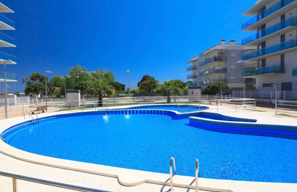 Acogedor apartamento con una magnífica piscina al aire libre y una privilegiada situación. Un corto y agradable paseo te llevará al centro y a la platja de Llevant en tan solo 10 minutos. Port Aventura está a tan solo 20 minutos a pie, o 5 en coche. Terraza privada, 1 habitación con cama doble, 1 baño completamente reformado, salón-comedor con sofá-cama, cocina equipada y wifi gratuito en salón y terraza Cerca de comercios, supermercados, zonas de restauración y ocio, autobuses y renfe