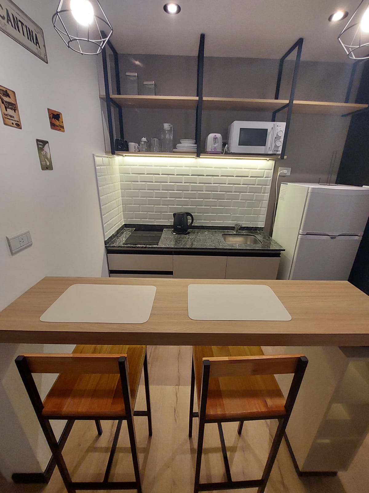 Monoambiente moderno pensado para tu comodidad, con una ubicación realmente destacable. El mismo cuenta con una hermosa terraza con vista a los cerros de la ciudad, equipada con parrilla de la cual podrás hacer uso, allí también se ofrece al público el servicio de desayuno BUFETT, abonando un módico importe por persona. Dispone de gimnasio del cual podrás hacer uso sin restricciones, al igual que de la piscina. Quiero que seas parte de una nueva y GRAN EXPERIENCIA en hospedajes, te esperamos.