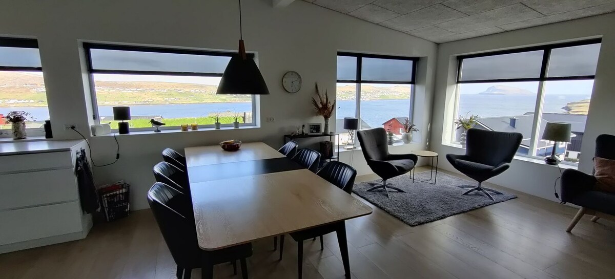 Apartamento grande y tranquilo en medio de las islas Feroe. Geográficamente central. La distancia más larga en coche es de aproximadamente 1 hora en coche. 6 de las islas están conectadas por túneles y puentes. Está a unos 15 minutos de Tórshavn a través del nuevo túnel submarino. Pueblo tranquilo junto al mar. Bonita vista desde el salón. Te encantará mi casa por la paz, las vistas y los alrededores.