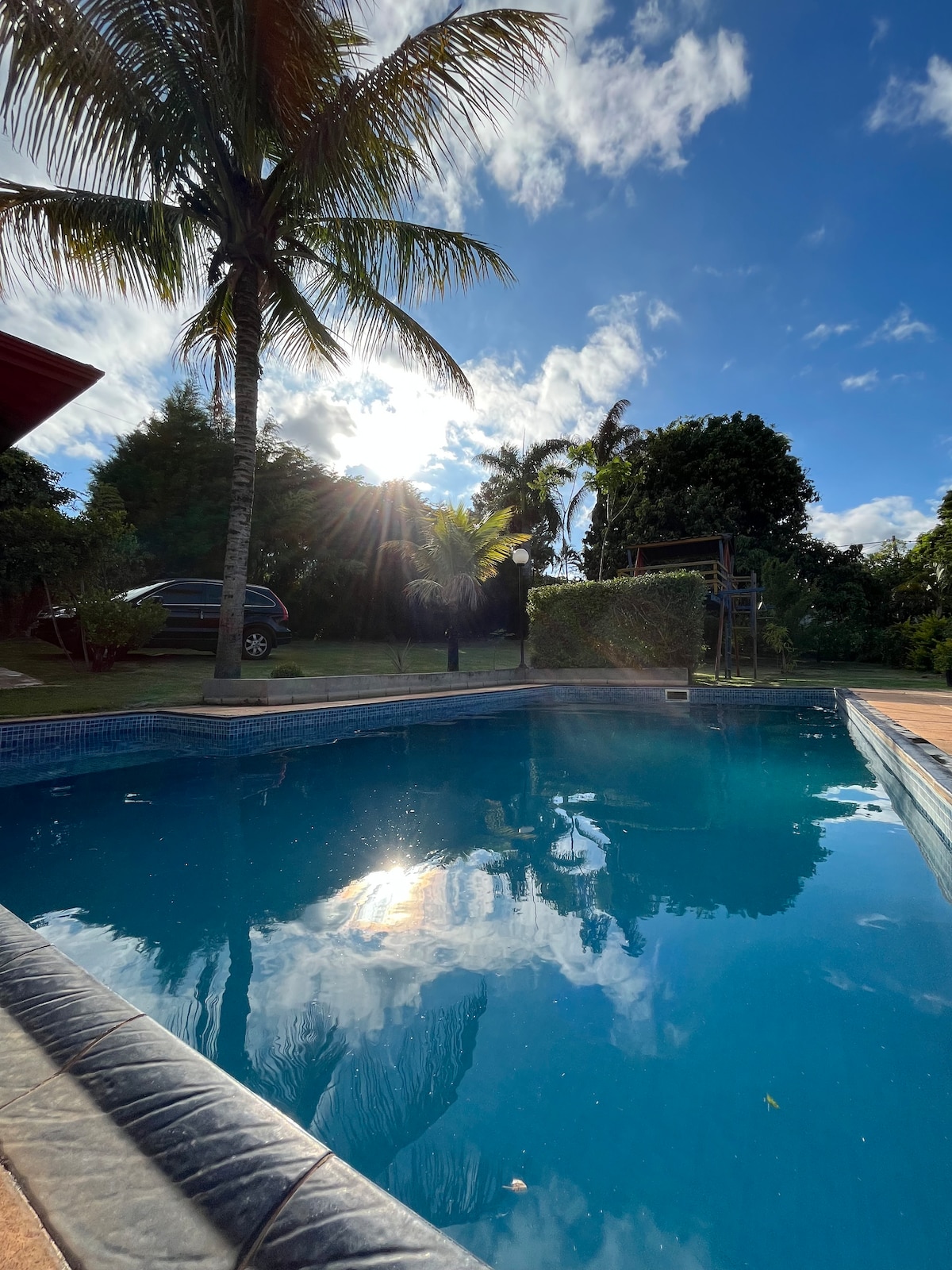 *ATENCIÓN: para el período de Carnaval, Navidad y Año Nuevo, el mínimo son 4 noches.* El espacio NO se comparte con otros huéspedes. La casa de enfrente es utilizada por la familia del propietario (totalmente separada). Granja familiar ubicada en Elias Fausto (a 1h30 de la capital de SP), condominio cerrado «CHÁCARAS IPIRANGA» con conserjería y seguridad. Terreno de 5.000 m², con cerca viva. Casa con 3 dormitorios (1 suite), wifi, parrilla/horno de pizza, piscina. Piscina con vista a la puesta de sol.