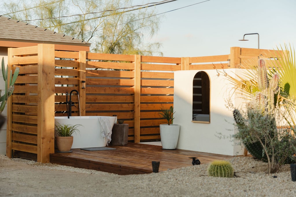 Cabaña en el desierto con bañera de leña