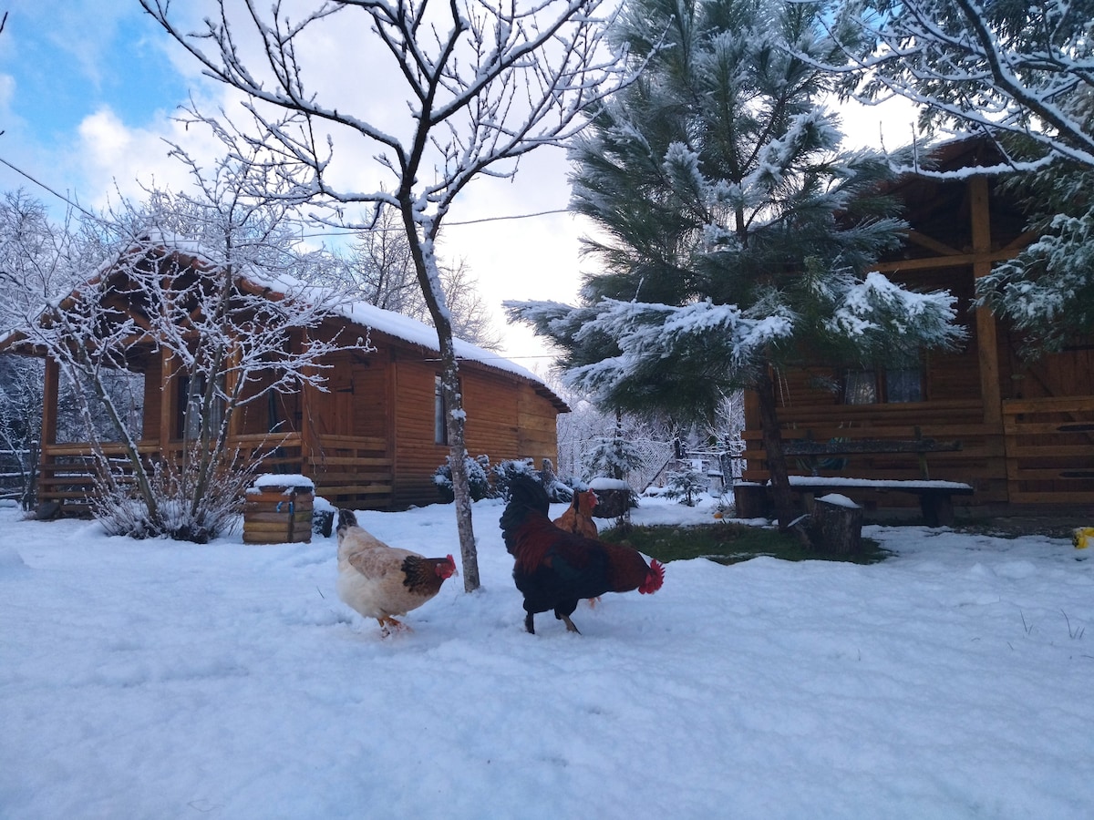 *Las bonitas cabañas están situadas entre el bosque y el jardín. * A 5-10 minutos a pie desde el centro de Mestia, lo suficientemente cerca de la ciudad, pero lejos del ruido. *Hay comodidad y puedes sentir la cercanía a la naturaleza. *Los que aman la naturaleza y estar cerca de ella definitivamente podrán relajarse aquí. *Las cabañas están separadas entre sí (unos 50 metros) y cada una tiene suficiente espacio en el patio para que los huéspedes de diferentes cabañas no molesten entre sí la relajación y las actividades al aire libre.