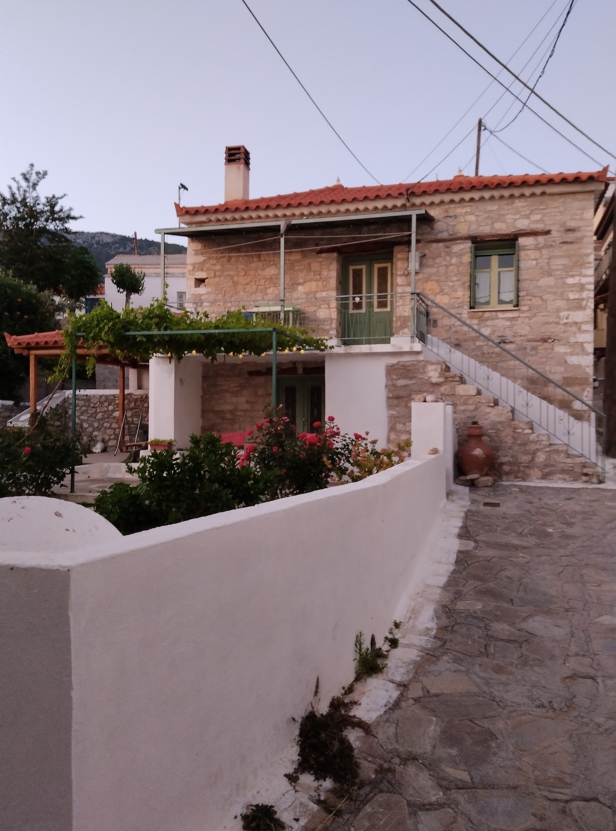 La casa está en el tradicional pueblo de Ambelos(a 23 km de Vathi, a 14 km de Karlovasi) del Monte Carvouni. Está a solo 3 minutos a pie de la plaza del pueblo y la playa más cercana está a 5 km. Puede dormir de 1 a 5 personas, ya que tiene una cama doble , una cama individual y un sofá que se convierte en una cama. Tiene accesibilidad a la calle con asfalto y aparcamiento en los límites de la parcela. Se admiten mascotas y es ideal para excursiones por la naturaleza.