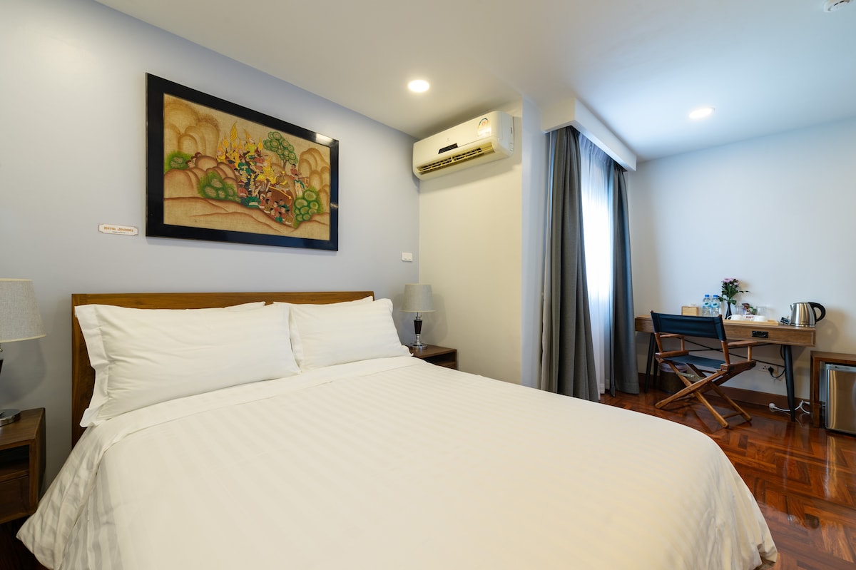 ¡Tailandia! El cannabis ya es legal y el mejor lugar para disfrutarlo es esta gran habitación de lujo en el cuarto piso de una casa de huéspedes boutique 420-friendly en el barrio más cool del centro de Bangkok. Disfruta de hierba, cerveza artesanal y videojuegos en Arcadia, un bar de ciencia ficción de los 80 con neón y dispensario. Fuma en tu propio balcón privado o en nuestro salón en la azotea, que alberga noches de cine de culto, juegos retro, comedia stand-up, juegos de mesa y DJs. Duerme cómodamente en una habitación grande y preciosa que ocupa todo el piso.