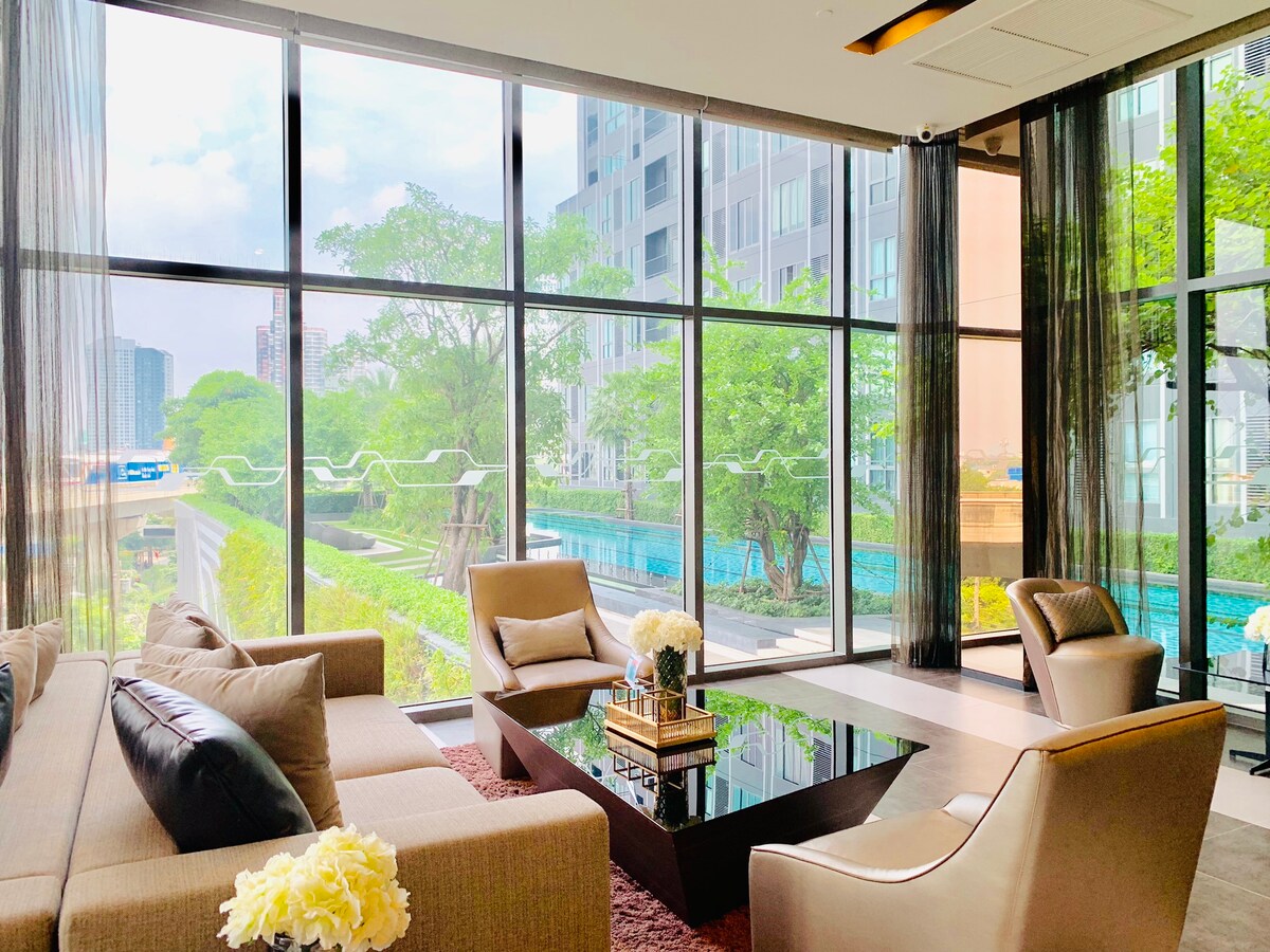 ¡Bienvenido a tu hogar lejos de casa! Nuestro apartamento de 35 metros cuadrados ofrece comodidad y conveniencia. A solo 10 pasos de la estación de Skytrain, podrás explorar Bangkok fácilmente. Aunque está en una zona más tranquila, está a solo seis estaciones del centro de la ciudad. Ubicación privilegiada: estación de Skytrain justo enfrente. Salón espacioso: 35 metros cuadrados de espacio acogedor y moderno. Servicios impresionantes: gimnasio, piscina y espacio de coworking. Perfecto para negocios o placer. ¡Reserva tu estancia y disfruta de lo mejor de Bangkok!
