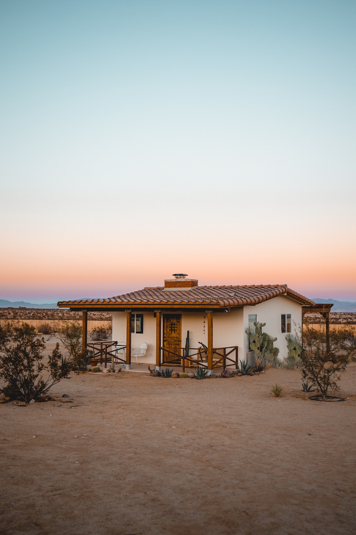 Una encantadora granja original en 5 acres privados a menos de 15 minutos del Parque Nacional Joshua Tree. Vistas a kilómetros de cada habitación. Jacuzzi de agua salada y terraza bajo las estrellas. Disfruta de la tranquilidad, el aislamiento, la privacidad y la observación de las estrellas muy cerca del Parque Nacional. Esta propiedad se siente muy remota y tranquila a solo 10 minutos de atracciones y restaurantes en Twentynine Palms. Esta casa emana encanto rústico con techos de viga alta y está diseñada profesionalmente para una comodidad moderna.