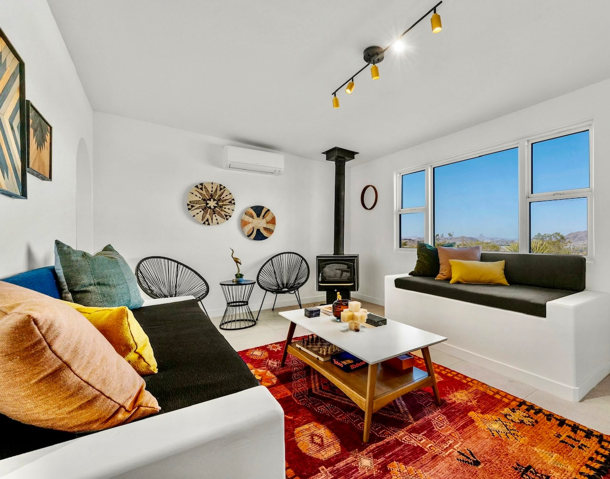 ¡Hemos creado una casa privada especial para tu relajación y disfrute! ¡Disfruta de la observación de estrellas en todas las áreas de la propiedad! ¡Escucha música con el tocadiscos! ¡Sumérgete en el spa para 6 personas con iluminación LED después de un agradable día en Joshua Tree Park, todo con total privacidad! ¡Disfruta de la parrilla bajo el patio cubierto y observa la puesta de sol! Ambos fogones al aire libre son perfectos para relajarse y mantenerse caliente mientras se observan las estrellas. ¡Disfruta de la mejor sala de juegos! **¡Cargador de pared Tesla disponible!