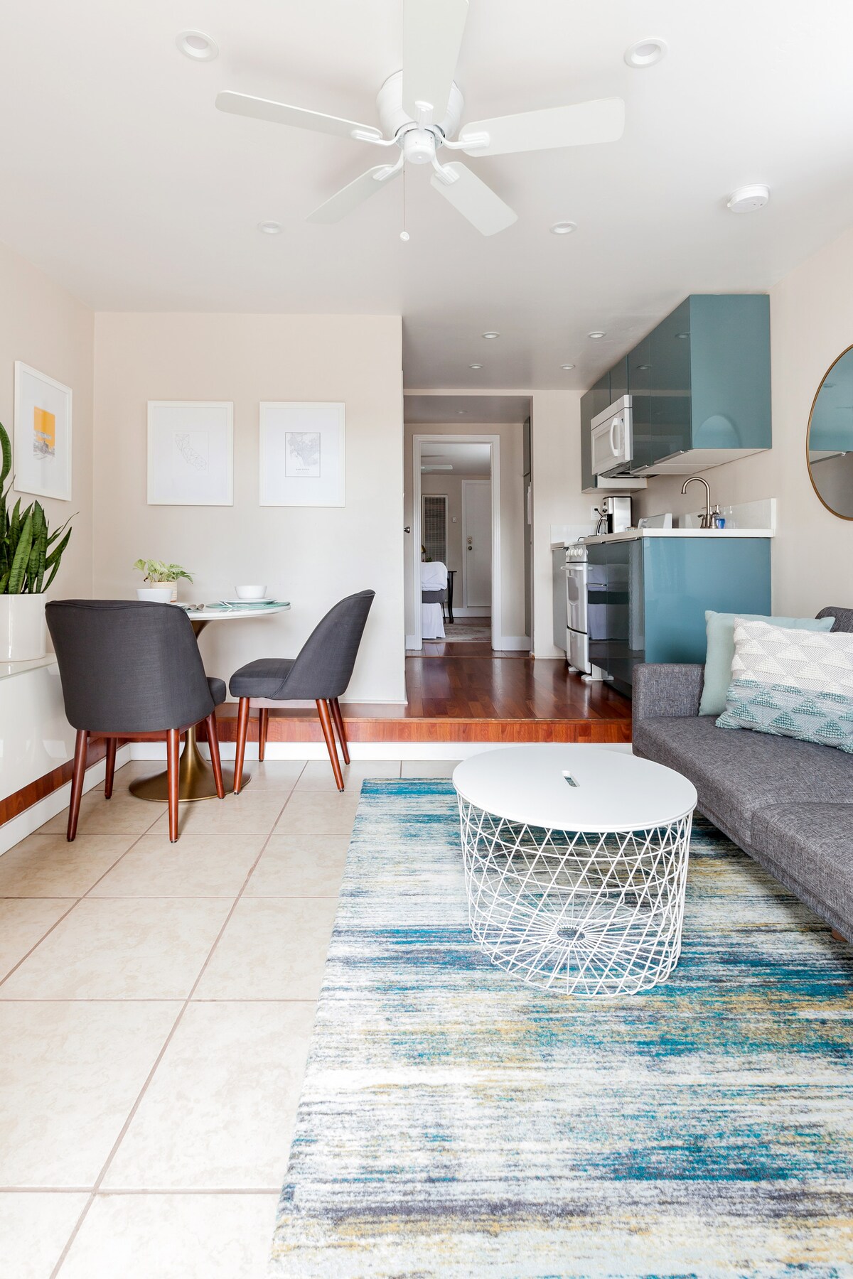 Esta espaciosa suite de invitados cuenta con un diseño abierto contemporáneo que permite que la luz solar inunde cada espacio. Relájate en el lujoso sofá que eleva la decoración azul y gris. Y disfruta de una bebida en el soleado comedor exterior. Ven y disfruta de este moderno y acogedor apartamento recién remodelado de 1 dormitorio/1 baño en el corazón de North Park. El apartamento está situado en el lateral de nuestra casa de artesanos con su propia entrada privada.