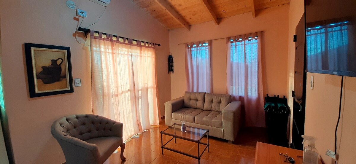 Relájate con toda la familia en este alojamiento donde la tranquilidad se respira. Te invitamos a conectarte con la naturaleza desde un lado más íntimo. Cabaña natural ubicada en una chacra familiar, parte del Camino de los Jesuitas. Disfrutá de exquisita comida española en nuestro restaurante Oliva, a cargo de Concepción "Concha" Alarcos, chef con trayectoria internacional. El restaurante funciona con reserva previa. Contamos con servicio de internet Starlink.