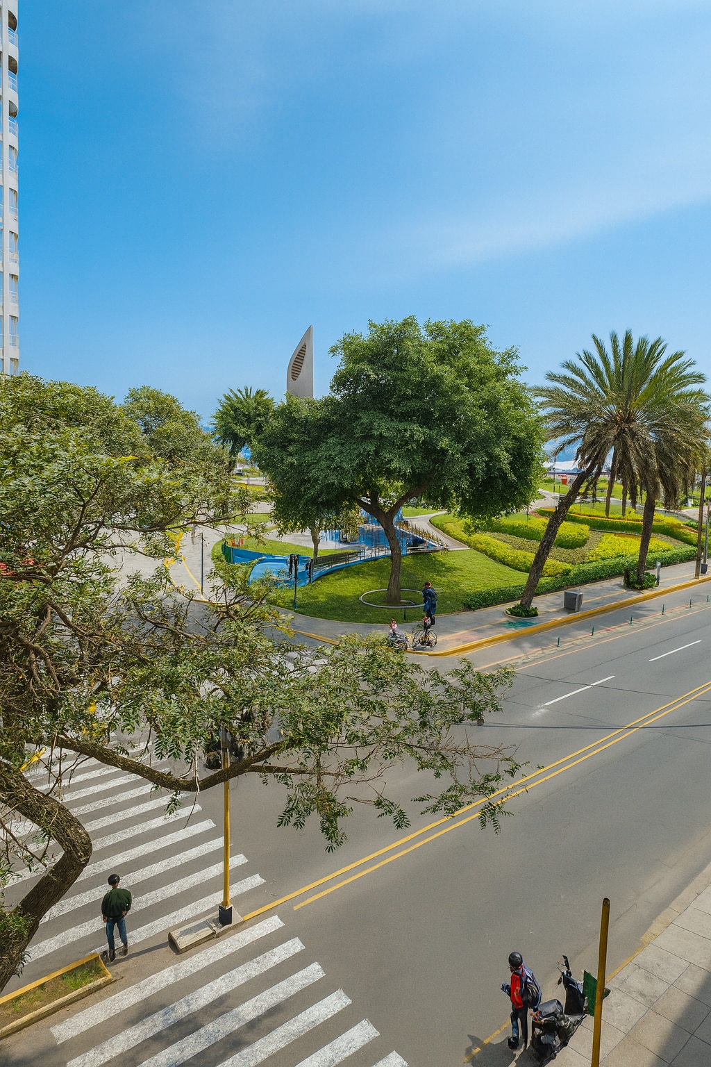 Enjoy a privileged oceanfront view above the luscious green coastal parks of Miraflores, the best neighborhood in Lima. Listen to the waves crashing on the rocks below while relaxing or napping and stroll up the boardwalk for some of the best food in the world! Just a short 2 block walk down the malecon to the picture-perfect lighthouse, 5 blocks to Avenida la Mar and ~10 to Larco Mar. Enjoy the building's shared roof-top pool and grill!