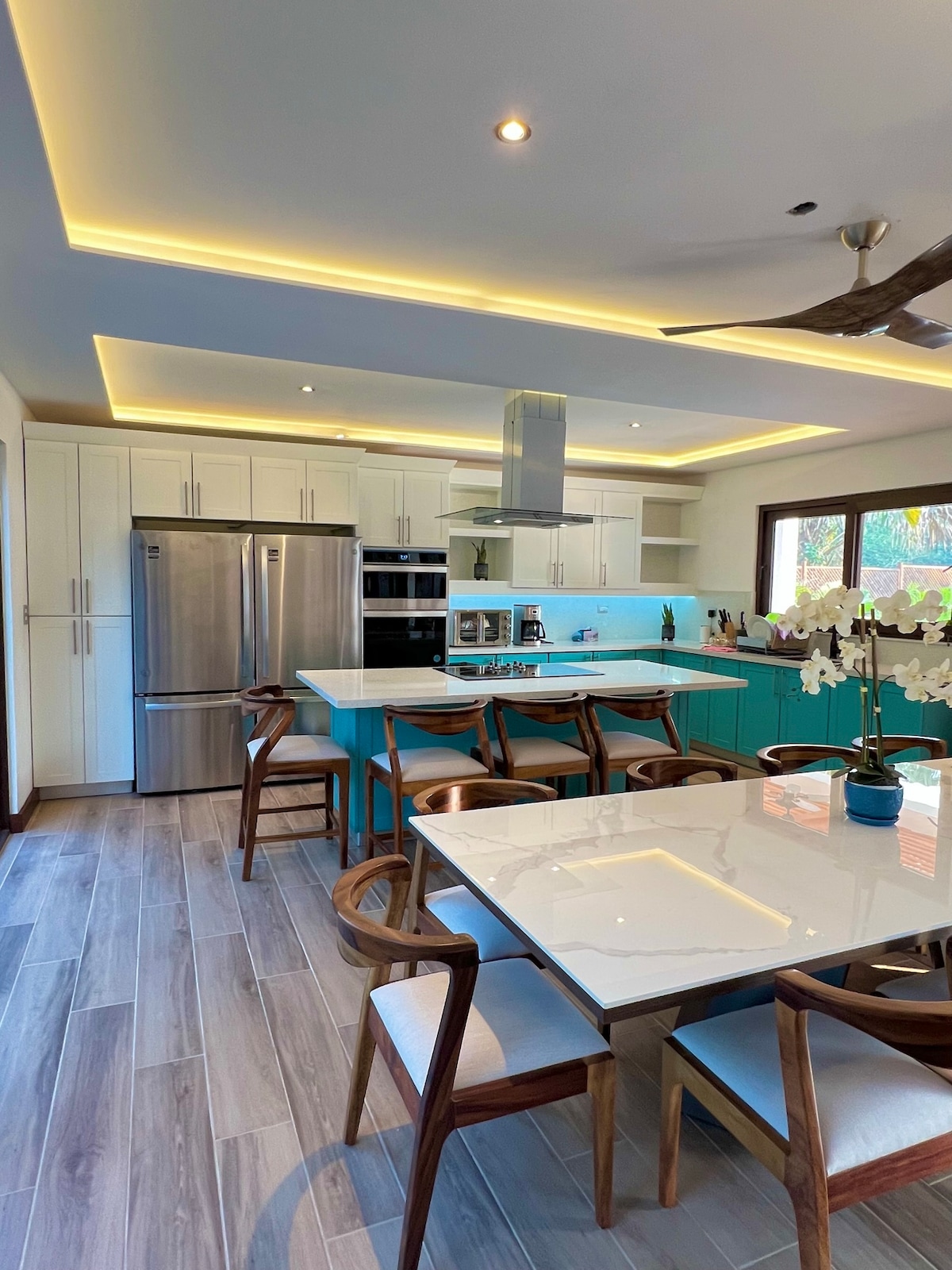 Con tu familia crea recuerdos inolvidables en esta casa en condominio seguro, con cocina moderna completamente equipada. Piscina privada grande con diferentes alturas para todas las edades, y múltiples sombrillas para tener sombra en la piscina. Acceso privado a la playa. Mesa de Ping-Pong, Juegos de niños y jardín de 500 metros para juegos al aire libre. Duerme cómodamente en 5 habitaciones con aire y TV, 16 camas en total. Parqueo para 4 carros dentro de la propiedad, más parqueos de visita.