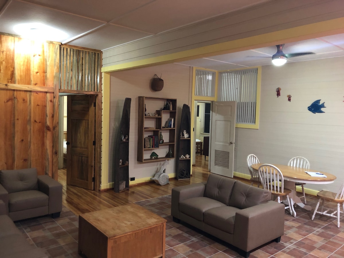Aléjate de todo y relájate en un idílico refugio tropical rústico situado junto a un hermoso río con pequeñas cascadas en las montañas de Cerro Azul. Esta espaciosa casa de 2 pisos y un dormitorio es ideal para parejas, familias pequeñas o grupos, con amplio espacio para dormir de 6 a 7 personas. La propiedad se encuentra dentro del Parque Nacional Charges con toda su flora y fauna tropicales, mariposas azules, colibríes, cascadas y senderos para caminar a la vuelta de la esquina. Ven a experimentar este destino único de alojamientos vacacionales.