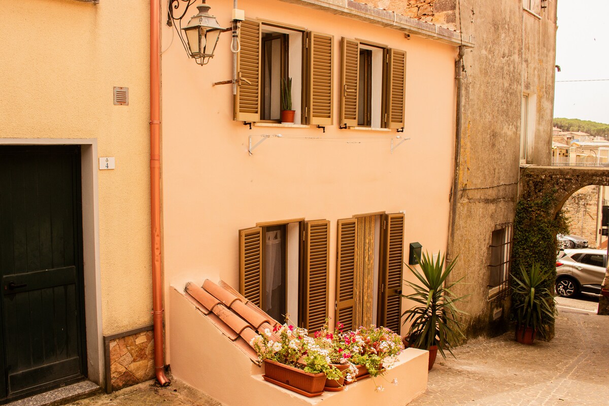 Casa Melograno is a three-story house with a charming small garden. The ground floor features a spacious kitchen, while the first floor includes a living room (which can also serve as a bedroom) and a bathroom. The bedroom on the second floor is accessible by a ladder. Casa Melograno has been tastefully renovated by us. Please note, it is not suitable for young children under 6 years old due to the lack of a banister on the stairs and the ladder leading to the top-floor bedroom.