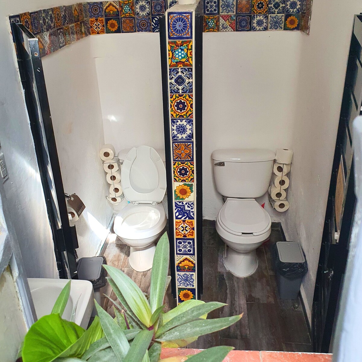 Es una casa antigua equipada para recibir huéspedes , todas las habitaciones son privadas, recién remodelada , pisos y azulejos nuevos , cuenta con una sala pequeña , cocina comedor equipada para preparar- guardar alimentos , cuenta con dos habitaciones con cama individual y baño privado cada una, dos habitaciónes con cama matrimonial y baño compartido una habitación con cama king size con baño compartido ( son dos baños completos, que comparten 4 habitaciones ) sala, comedor cocina terrazita.