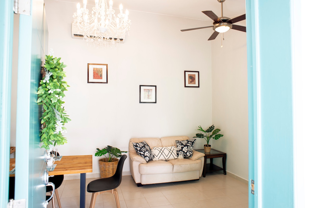 Apartamento con acabados y materiales naturales, con porche con vista a un amplio y hermoso jardín. Ubicado en el centro a tan solo 3 cuadras del malecón, cerca de restaurantes, bancos y supermercados. Este predio ha estado en nuestra familia por 4 generaciones (+100 años) y hemos preservado gran porcentaje de la vegetación local original para mantener el enfoque ecológico que nos caracteriza.