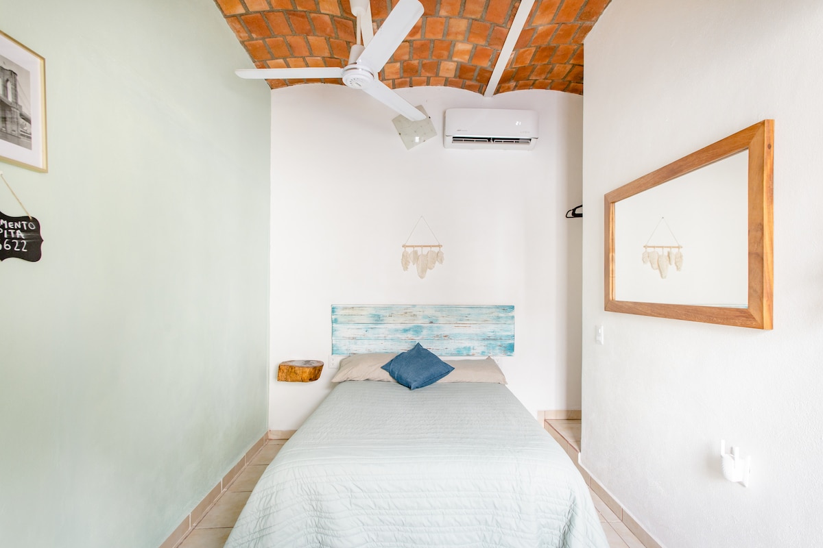 ¡Sol es parte de Casa Calavera, un paraíso tropical en San Pancho, Nayarit! Una propiedad exuberante en un entorno de pueblo. Estamos a solo 5 minutos a pie de la ciudad y a 12 minutos a pie de la hermosa playa. La azotea tiene impresionantes vistas al mar y a las montañas. La suite tiene aire acondicionado, cama tamaño king, escritorio, mininevera, cafetera y caja fuerte. Disfruta de los espacios compartidos descansando en la piscina de agua salada o viendo la puesta de sol en la azotea. ¡Perfecto para el trabajo a distancia con nuestro wifi rápido! Toda el agua está filtrada y es segura para beber del grifo