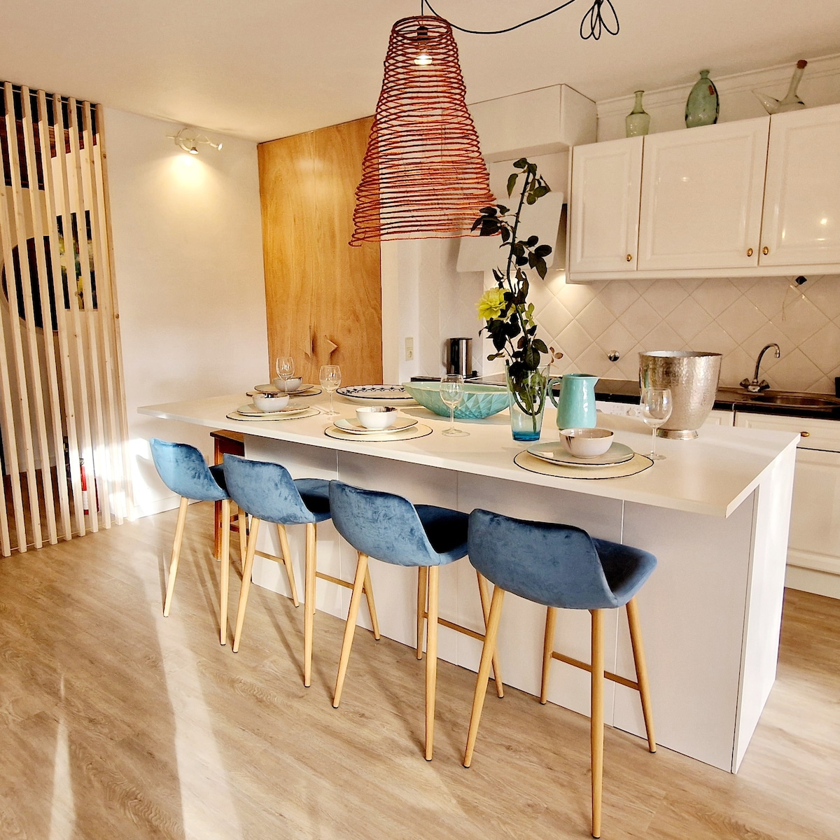 Apartamento reconstruído por arquitecto, excelente privacidade, exposição solar, com wifi, e praia a 150m. 1 suite com SPA e banho turco com aromaterapia. 1 suíte com terraço com vista mar, tela de projeção de cinema. Sala com vista de mar, rio, e terraço, onde poderá disfrutar de uma zona de estar e de um barbecue com grelha em ferro forjado. Perto de restaurantes, cafés e supermercado, e estação de comboio. Ar condicionado e piso aquecido em todas as áreas, TV 4K e box independente por suíte.